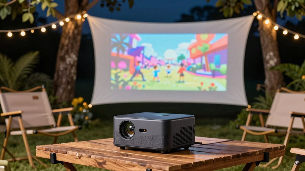 Choosing the right portable projector for outdoor movies is like finding a trusty steed—reliable, portable, and ready for adventure. With options ranging from 1080P clarity to 4K brilliance, you’re equipped to transform any backyard into a cinema. Remember, even in a world of flying cars and instant holoscreens, a good projector keeps the magic alive, proving that sometimes, the simplest pleasures are timeless. So, pick your favorite and enjoy countless cinematic journeys ahead!